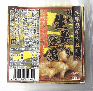 生姜を豆乳に混ぜ込み豆腐にしました。